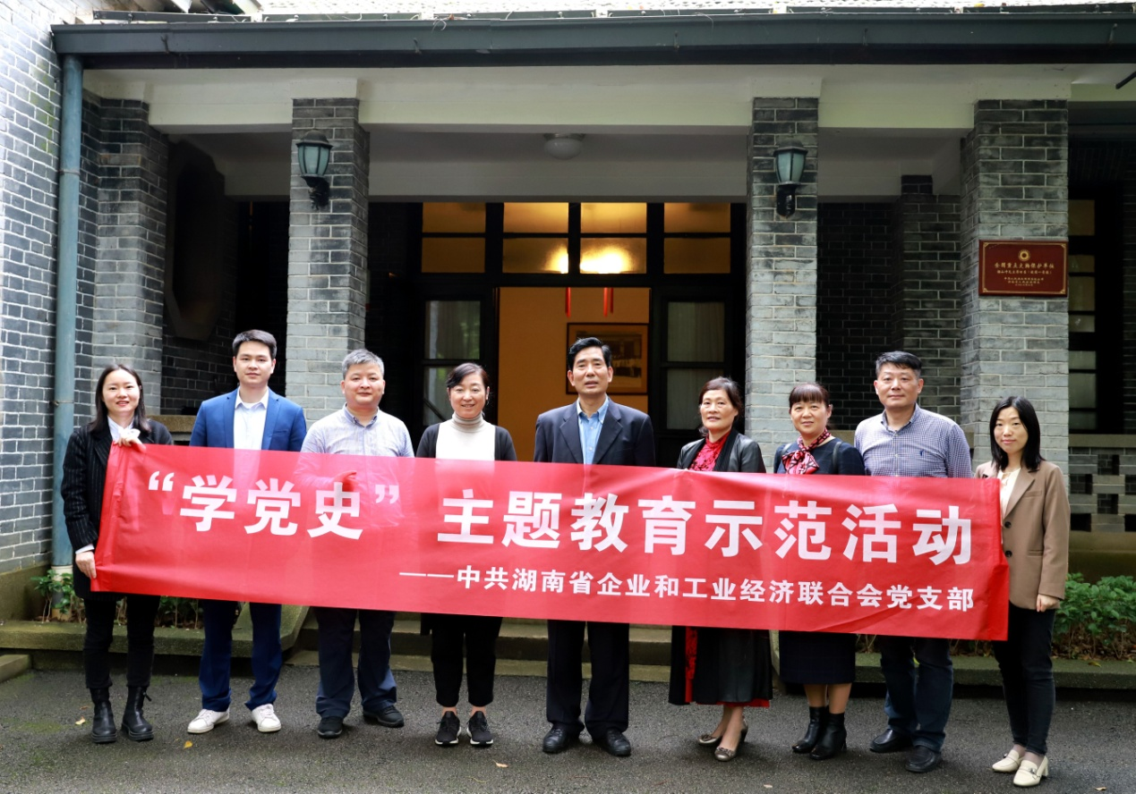 省工信厅社会组织行业党委副书记张辉与省企工联党支部及联合会工作人员在毛主席旧居前合影