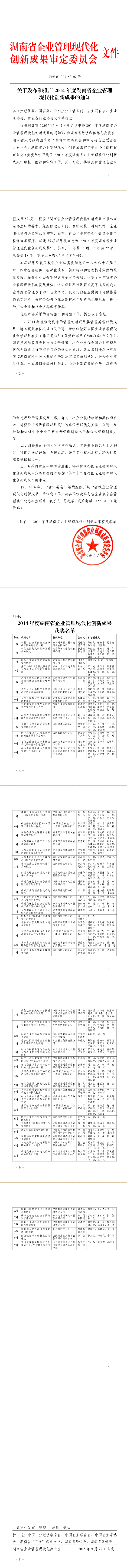 关于发布和推广 2014 年度湖南省企业管理现代化创新成果的通知