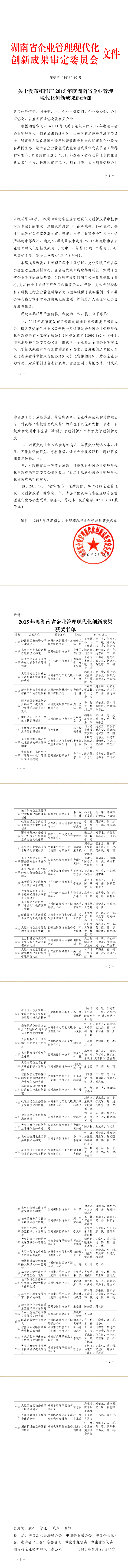 关于发布和推广2016年度湖南省企业管理现代化创新成果的通知