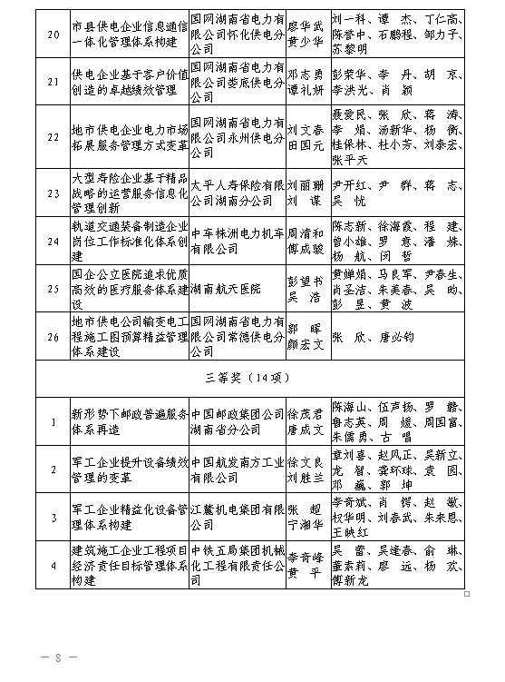 关于发布和推广第二十届湖南省企业管理现代化创新成果的通知
