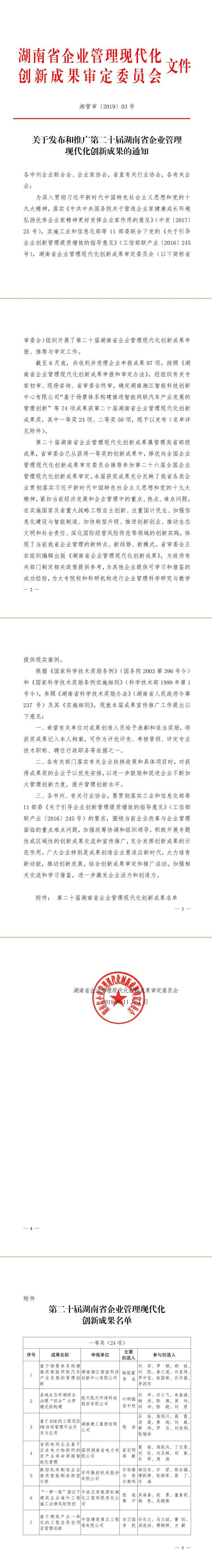 关于发布和推广第二十届湖南省企业管理现代化创新成果的通知