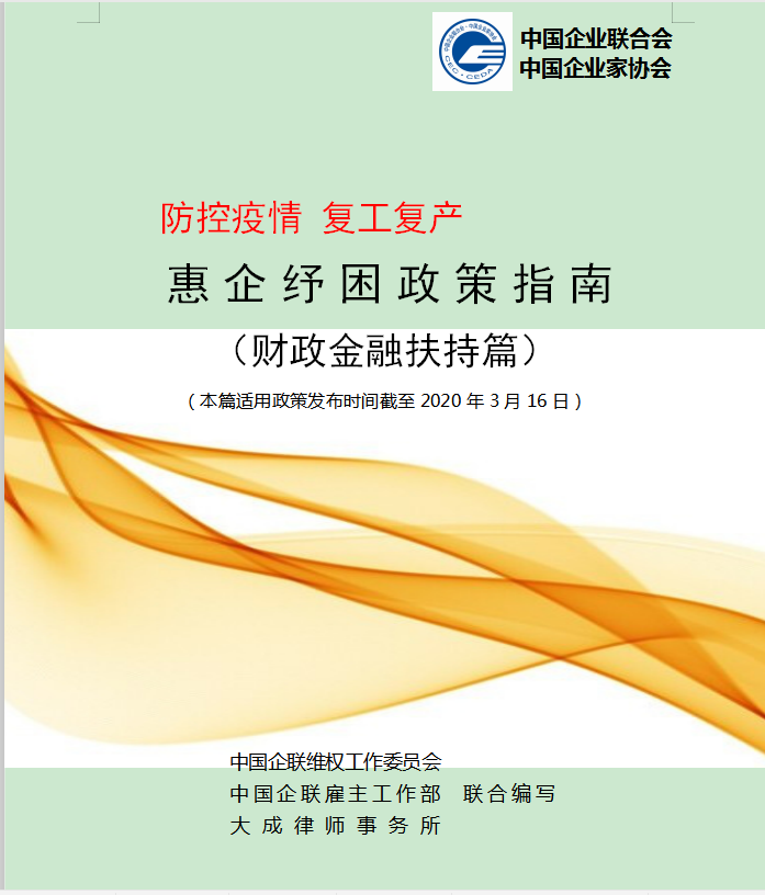 防控疫情 复工复产 惠企纾困政策指南 (财政金融扶持篇)