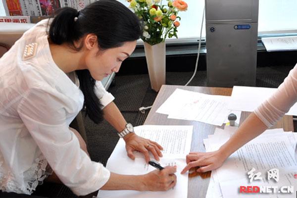 近日,长沙县跳马湘缘花卉苗木合作社的花农在民生银行长沙雨花亭支行签署贷款合同。