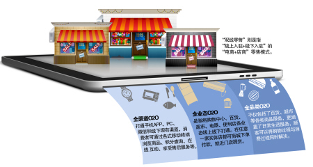 这是步步高电商上线后的全新的销售模式——O2O,即Online To Offline,是将线下商务的机会与互联网结合在一起,让互联网成为线下交易的前台,打造一个“全渠道、全业态、全品类的O2O和双线零售的全新服务模式”。其核心是把线上的消费者带到现实的商店中去,让用户在线支付购买线下的商品和服务后,到线下去享受服务。O2O也是苏宁云商、天虹商场、海宁皮城等很多其他传统零售业转型做电商后选择的服务模式。