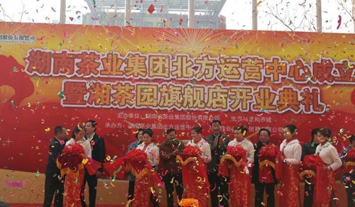 中国茶叶流通协会常务副会长王庆、教育部茶学重点实验室主任刘仲华教授等嘉宾到场祝贺,300多位来自湖南、福建、北京、天津、上海等地区的客商应邀参加了开业典礼。