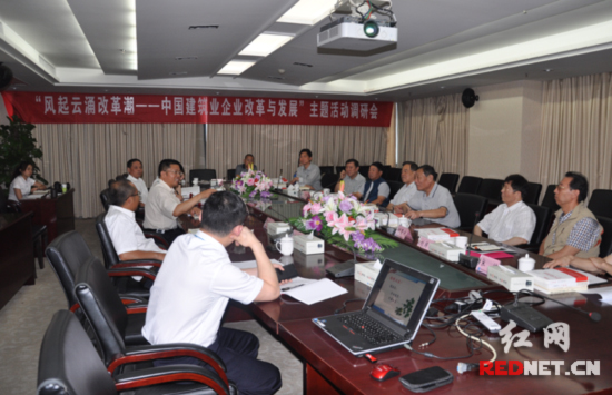 (中国建筑业专家调研组与中建五局围绕“中国建筑企业改革与发展”主题开展座谈。)