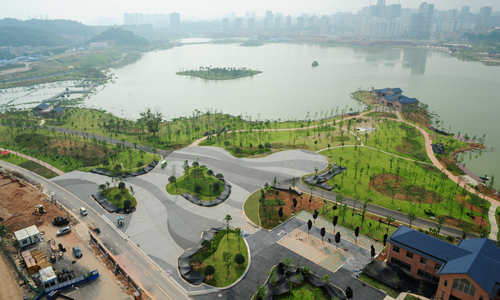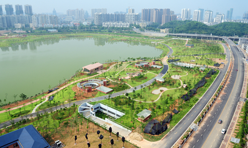 8月6日下午,长沙市西湖文化园建设现场,园内景观建筑工程及道路基本完工,绿化和配套设施已进入扫尾阶段,预计十月一日可建成开园。田超 任梦龙 摄影报道