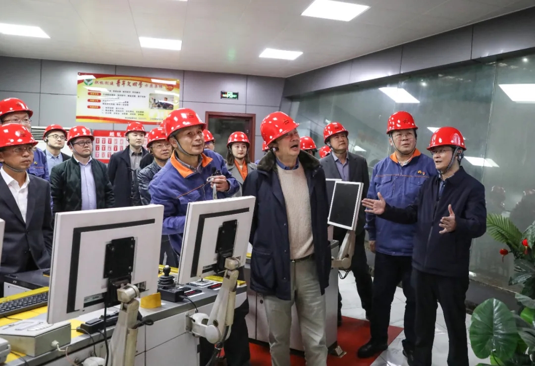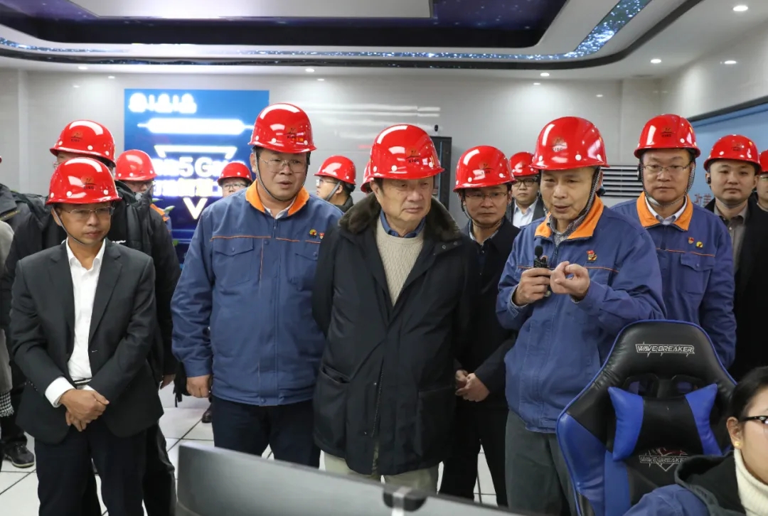 12月8日下午,华为公司CEO任正非一行到湘钢考察调研。华菱集团党委书记、董事长曹志强,湘钢领导李建宇、王树春、喻维纲陪同参观了五米板厂智慧中心、智慧天车、自动加渣机器人、轧钢车间自动转钢应用现场以及棒材厂棒三线AR远程装配现场等处,湘钢领导详细介绍了湘钢推进5G、人工智能、工业互联网等新一代信息技术与生产现场深度融合等情况。